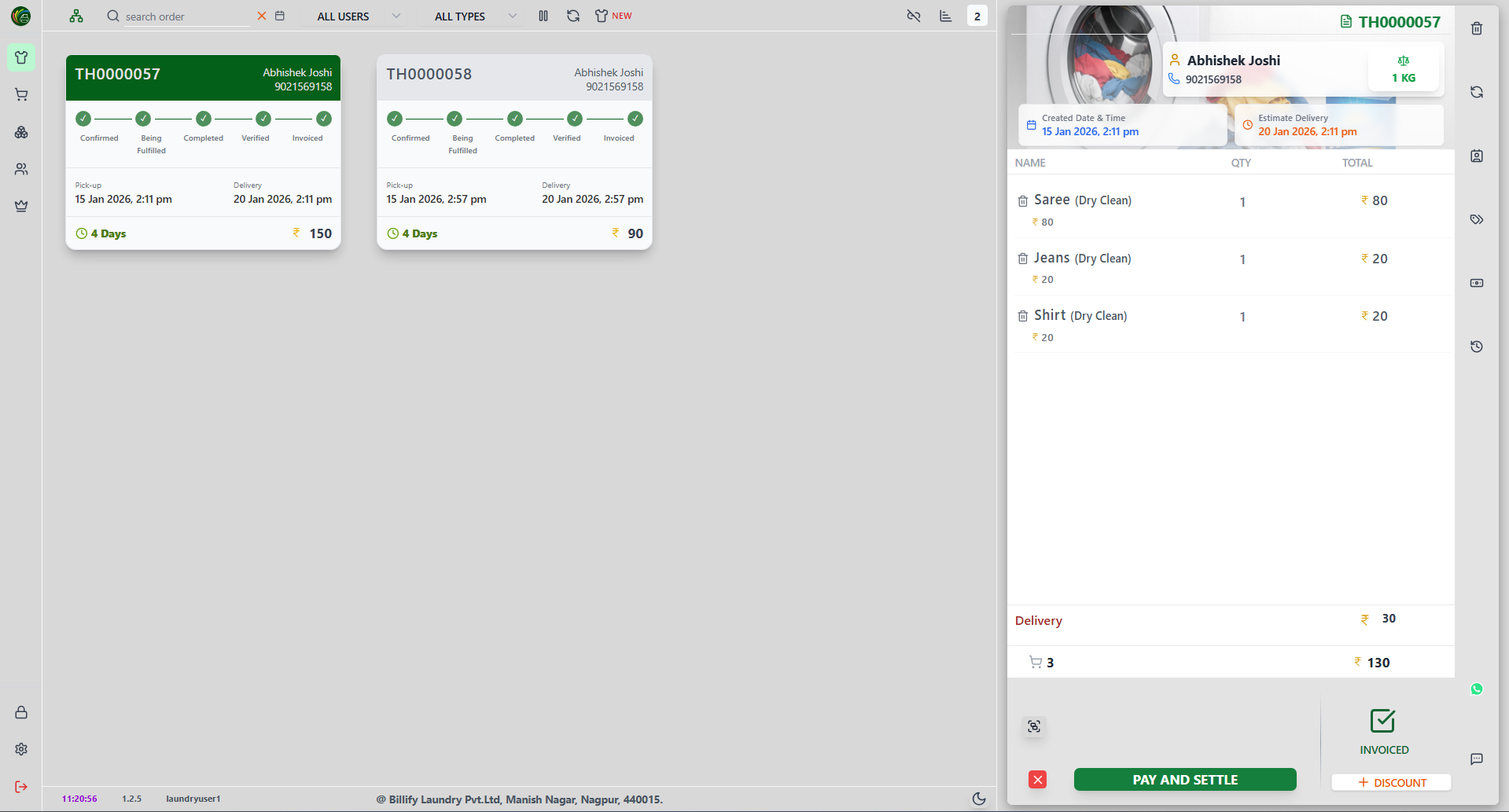 Billify Laundry Pvt. Ltd. and is being processed.